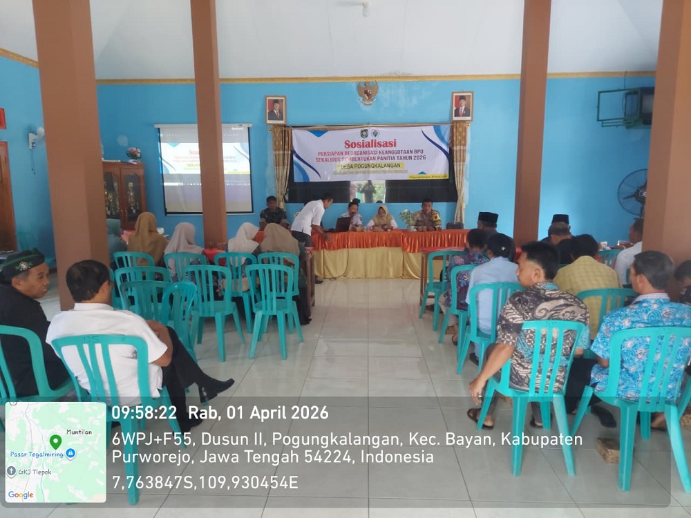 Acara dihadiri oleh Pemerintah Desa Pogungkalangan, BPD, Forkompinca Kecamatan Bayan, Pendamping Desa, Pendamping KDPM, LKD Desa Pogungkalangan, Tokoh Masyarakat, Perwakilan Masayarkat Desa Pogungkalangan.